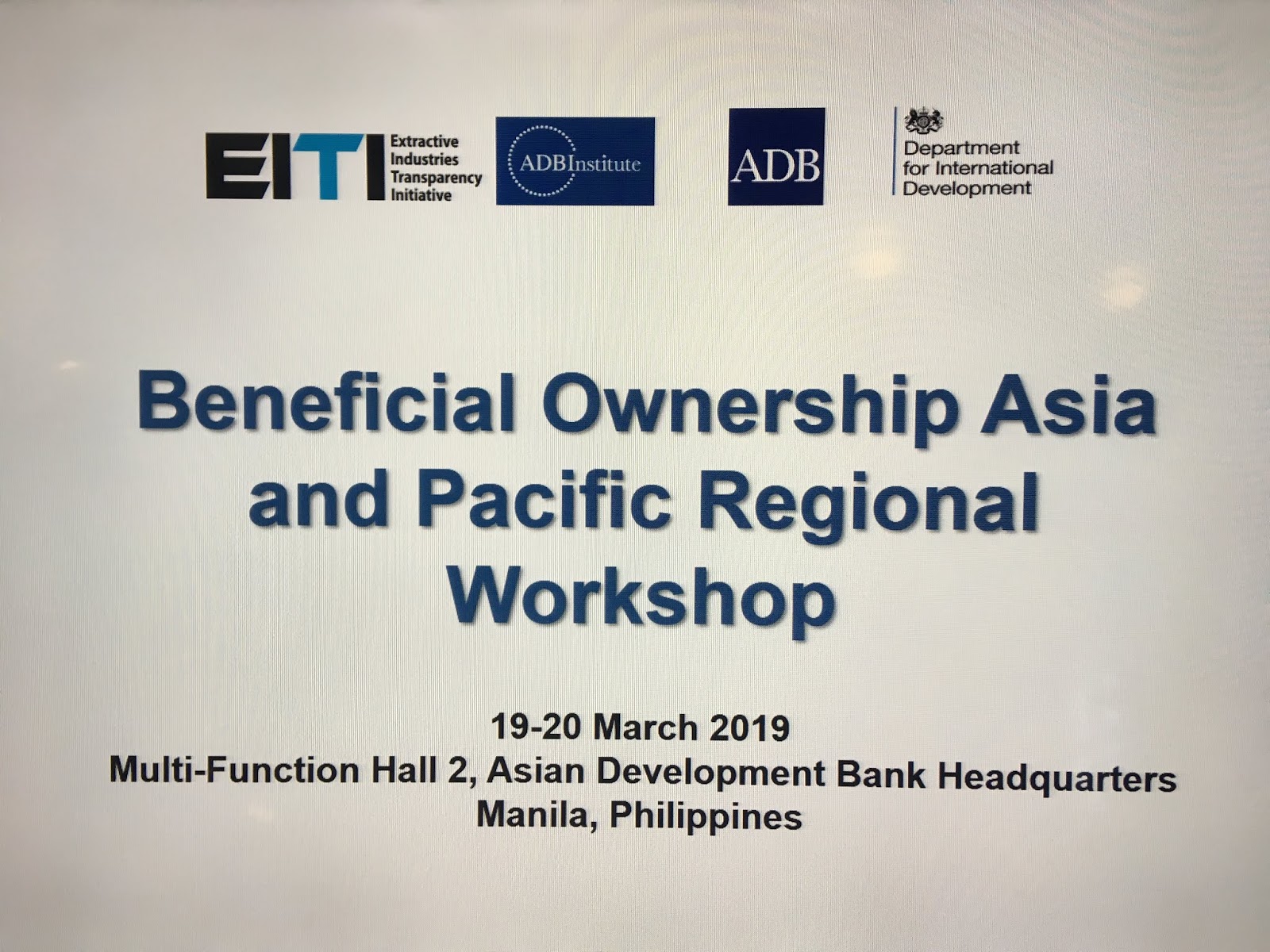 EITI and Asian Development Bank and are hosting a 2-day workshop in Manila on beneficial ownership (BOT), with 12 EITI countries from the region represented.